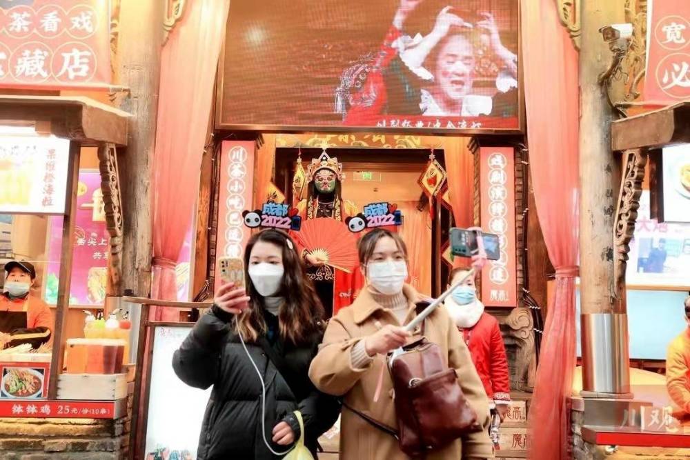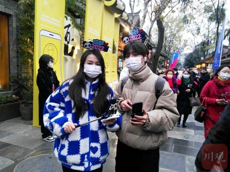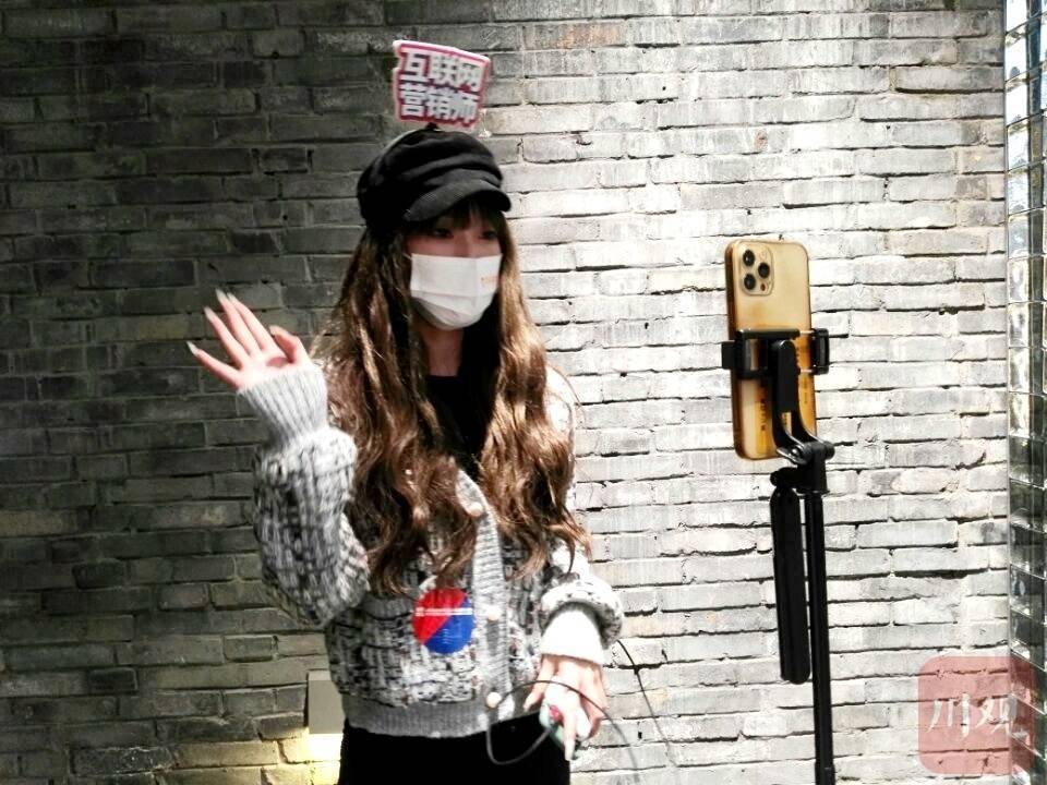 经过严格的疫情防控措施,12日下午5点,众多互联网营销师陆续“入驻”宽窄巷子,他们手持直播设备,和宽窄巷子沿街商家及部分游客一道,用直播迎新春的方式,“点燃”了宽窄巷子的网红气质。现场,有的营销师在介绍宽窄巷子的美食、介绍成都的文创产品,还有的营销师在分享成都的硬核“黑科技”产品,推荐成都文旅产业发展机会……宽窄巷子,变成了名副其实的“国家级网红街”。